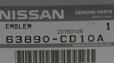 NISSAN Genuine 350Z Front Fender Logo Emblem Badge 63890CD10A